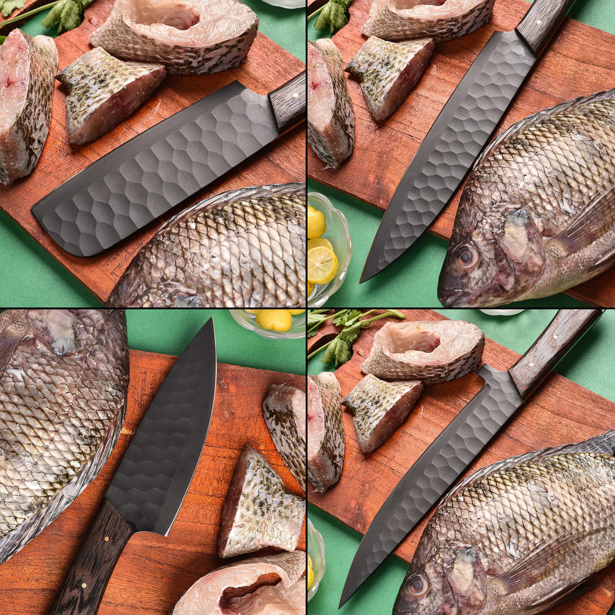 Obsidian Series 5 Piece Hand-Made Damascus Chef Set